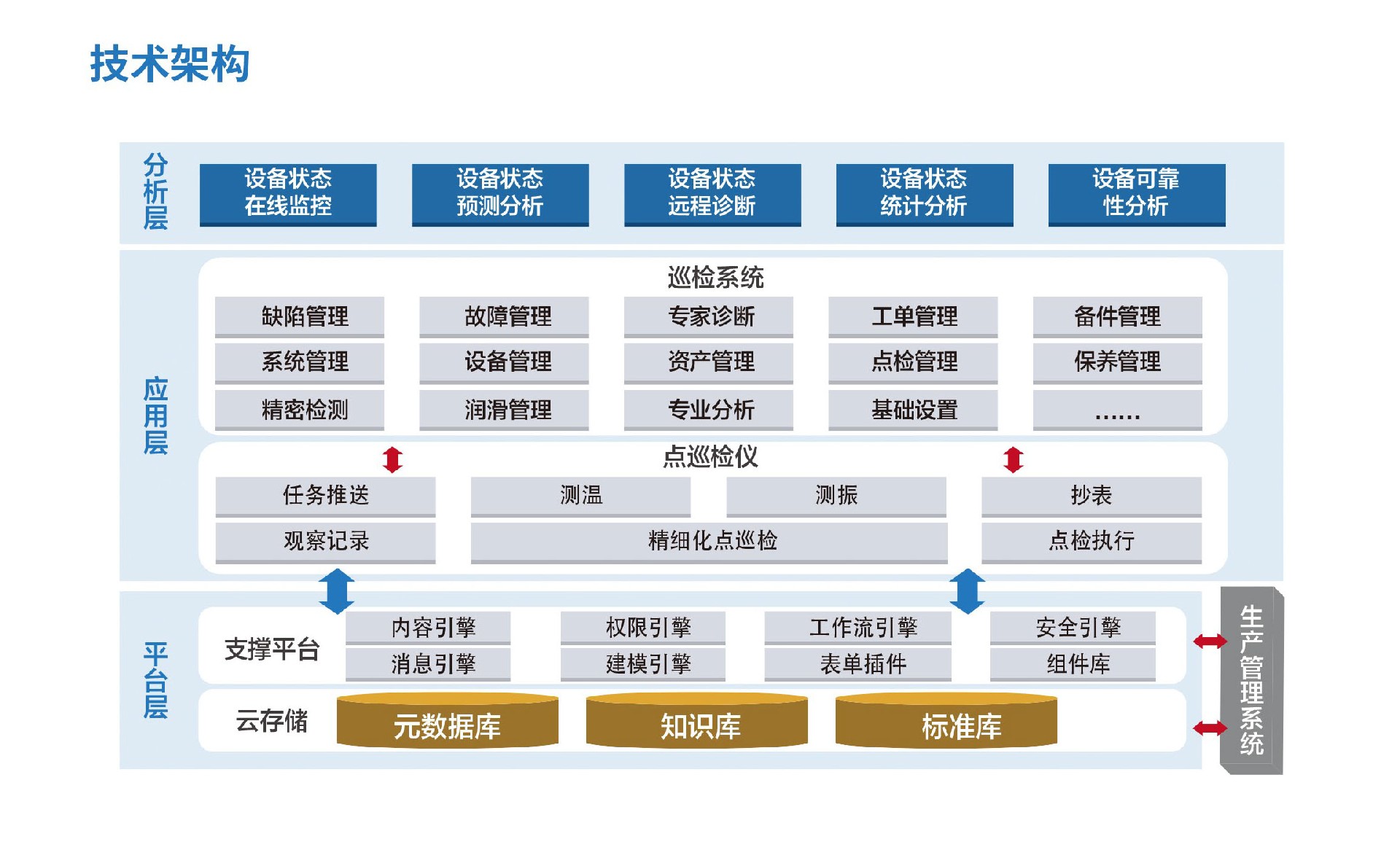 所涉及業(yè)務分為點檢管理與巡檢管理;點檢管理針對主設備開機前的定點檢查;巡檢管理則針對設備運行過程的日常巡檢業(yè)務。兩塊業(yè)務同時基于設備基礎管理中對于點巡檢規(guī)范的制定,由巡檢管理人員制定周期性的計劃,系統(tǒng)將自動根據計劃下派周期性的點巡檢任務,也可通過手動創(chuàng)建臨時性的工作任務。作業(yè)執(zhí)行人員通過手持移動終端進行現場工作,以 NFC卡作為巡檢位置的簽到方式,簽到后移動端程序將自動顯示工作內容并引導巡檢人員進行相應作業(yè),并記錄作業(yè)內容,當作業(yè)人員發(fā)現缺陷問題時也能夠通過移動終端收集缺陷,系統(tǒng)將通知相關責任與監(jiān)督人員,有效跟蹤缺陷實現整體閉環(huán)。