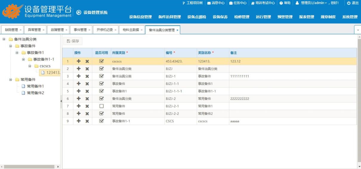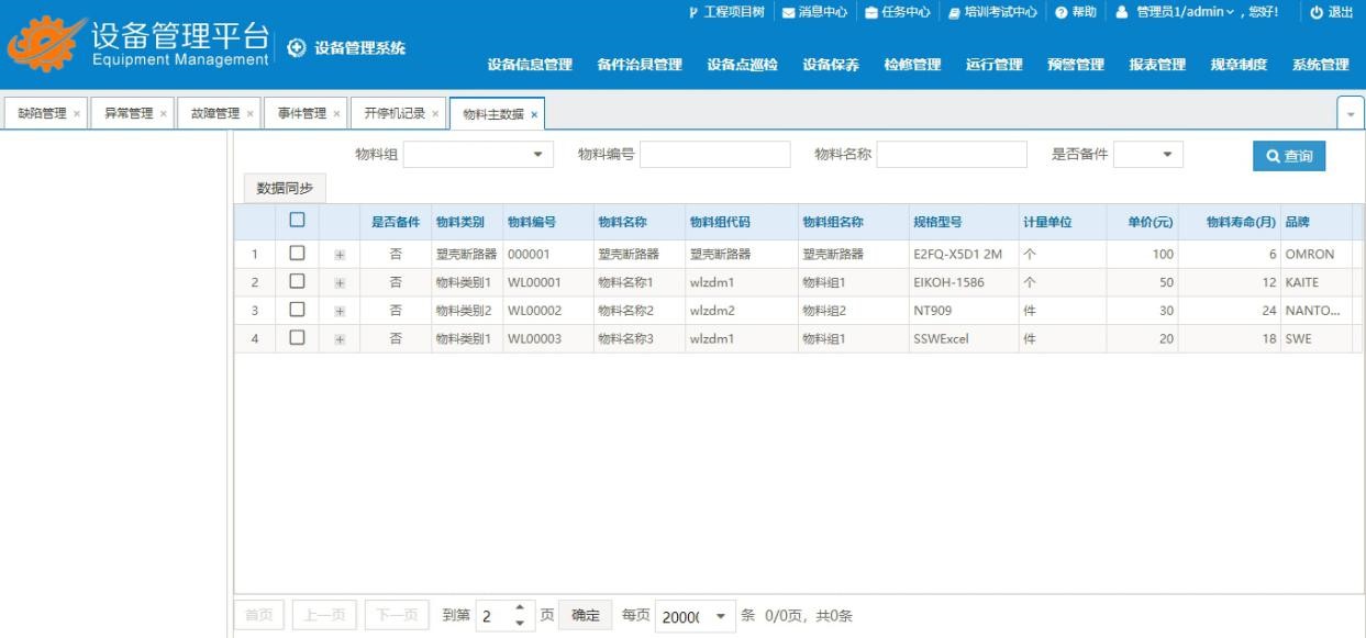 與供應鏈系統(tǒng)進行數據交互,對備件類型進行管理,功能包括增刪改查和同步物料信息管理分類數據。