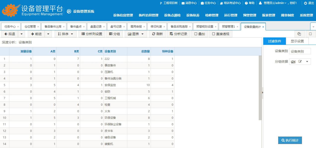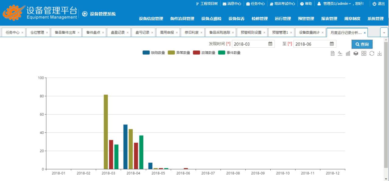 實現設備信息、巡檢、點檢、保養(yǎng)檢修、備件庫存等數據統(tǒng)計信息已報表方式展示。
