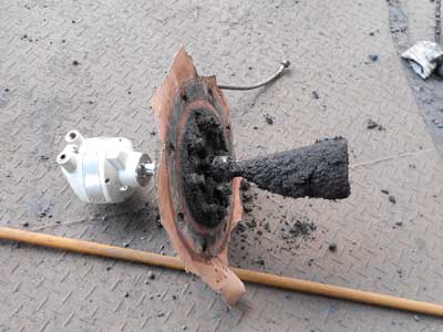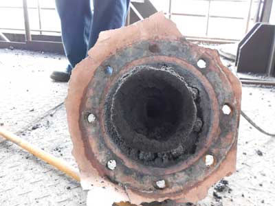 傳統(tǒng)的雷達(dá)探尺從高爐上取下后的狀況,嚴(yán)重積灰,新產(chǎn)品裝上后短時(shí)間內(nèi)就無(wú)法使用。